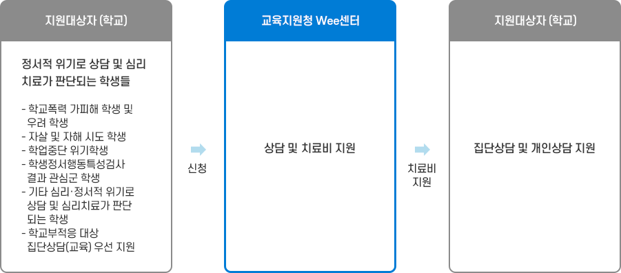 학교생활 부적응이나 위기 호소 학생들에게 ‘진단-상담-치료’가 가능한 ONE-STOP 서비스 제공